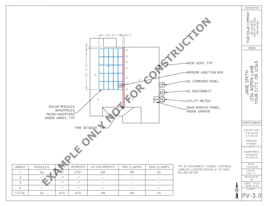 We offer custom tailored solar plan sets, designed to fit the needs of your project and fulfill the requirements of your building authority. If there is a need for anything else on your plans, please let us know. Contact us here to order your plans today.